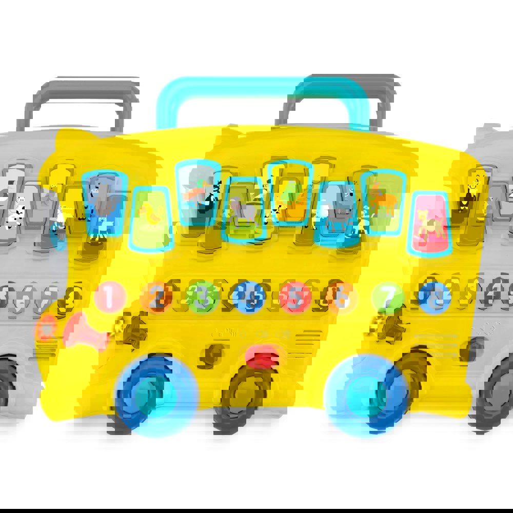 Hop aboard the WinFun Animal Sounds Bus for a fun-filled learning journey! This bright yellow bus, designed for toddlers aged 12 months and up, combines push-along play with interactive sounds and lights. Little ones can easily grasp the integrated handle and push the free-wheeling bus around, encouraging movement and imaginative play. The bus features colourful buttons showcasing friendly animal passengers in the windows. Pressing these buttons activates their corresponding sounds, helping children learn animal identification in an engaging way.