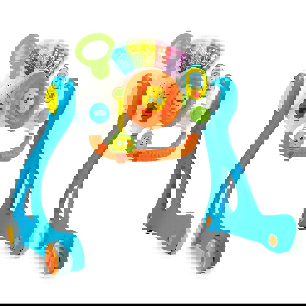 When your little one is ready to take their first steps, the WinFun Drive ‘N Play Gym Walker transforms into a sturdy push-along walker. The easy-grasp handle provides support, while the lockable wheels ensure safety during both stationary play and walking practice. Featuring realistic car sound effects and cheerful tunes, this multi-stage toy stimulates sensory development, encourages gross and fine motor skills, and supports your child through crucial developmental milestones, offering engaging play from tummy time right through to confident walking.