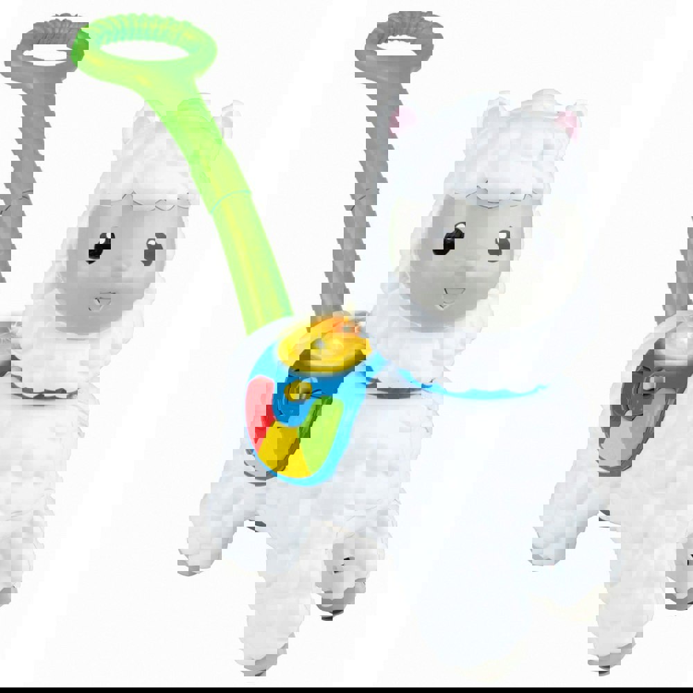 The WinFun Push-Along Little Alpaca isn’t just for walking practice; it’s packed with sensory fun too. The colourful saddle features light-up buttons that activate engaging sounds and cheerful melodies when pressed. There’s also a spinning roller and clacker rings for little hands to explore, helping to develop fine motor skills. This delightful push toy stimulates senses, promotes gross motor development, and offers rewarding lights and sounds to keep toddlers motivated and entertained as they explore on their feet.