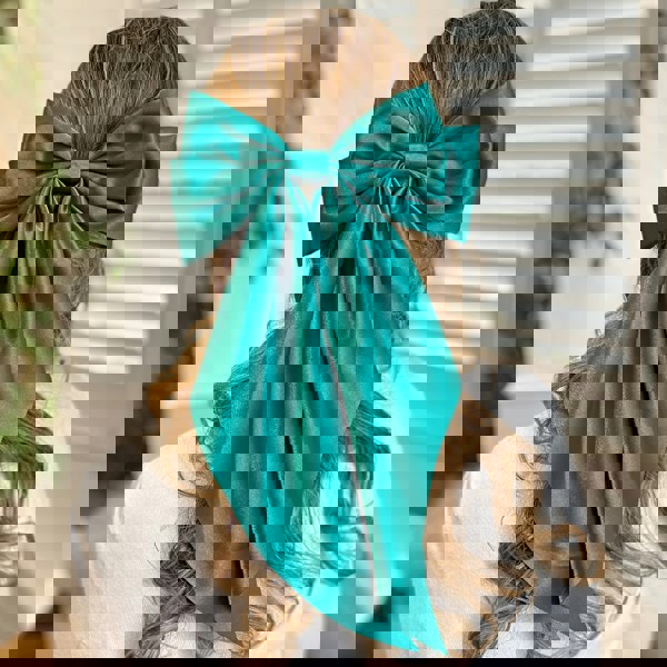Green Satin Hair Bow Green Hair Clip Long Bow