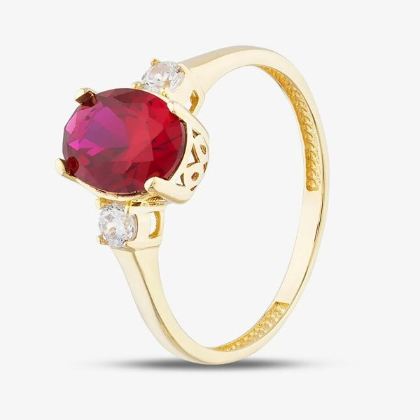 9ct Yellow Gold Red & Clear Cubic Zirconia Half Eternity Ring PR02470RU