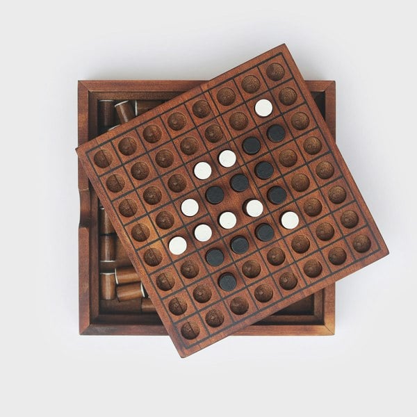 Think you're clever? Prove it. This classic wooden Reversi game pits you against your opponent in a battle of flips, traps and tactical glory. With 64 reversible pegs and a built-in 8x8 grid board, it’s a mind game disguised as a beautifully crafted box. No screens, no beeps, just pure strategy and smug satisfaction.
