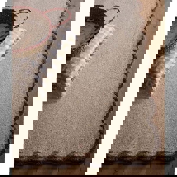 Enhance your home with the Wool Scalloped Natural Brown Rug Bordered Design, featuring a cut-out scalloped edge in a complementary shade. Crafted from hand-tufted wool, this rug offers a luxurious feel underfoot while its playful yet elegant design adds subtle character to bedrooms, living spaces, or reading nooks.