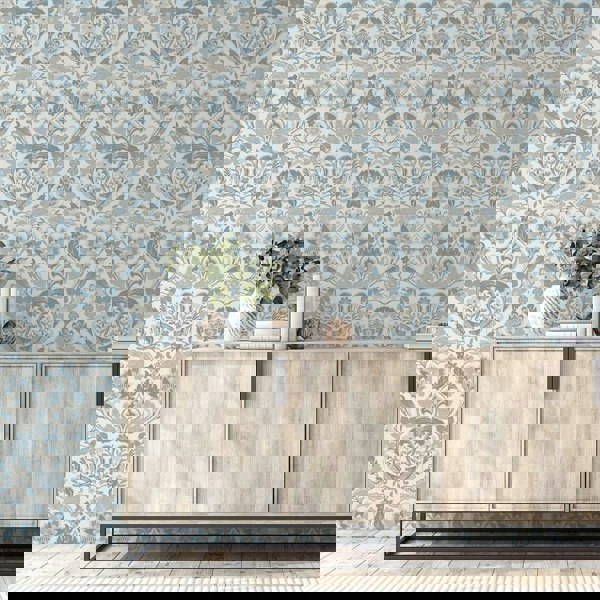 World Of Wallpaper Folk Floral Textured Wallpaper - Soft Blue brings a decorative, vintage-inspired look to your interior, combining birds, flowers and leaves in a folk-style pattern. The soft blue colourway offers a gentle backdrop that can suit a range of rooms, from feature walls to full-room coverage, while the textured, matte finish adds subtle surface interest without shine.
