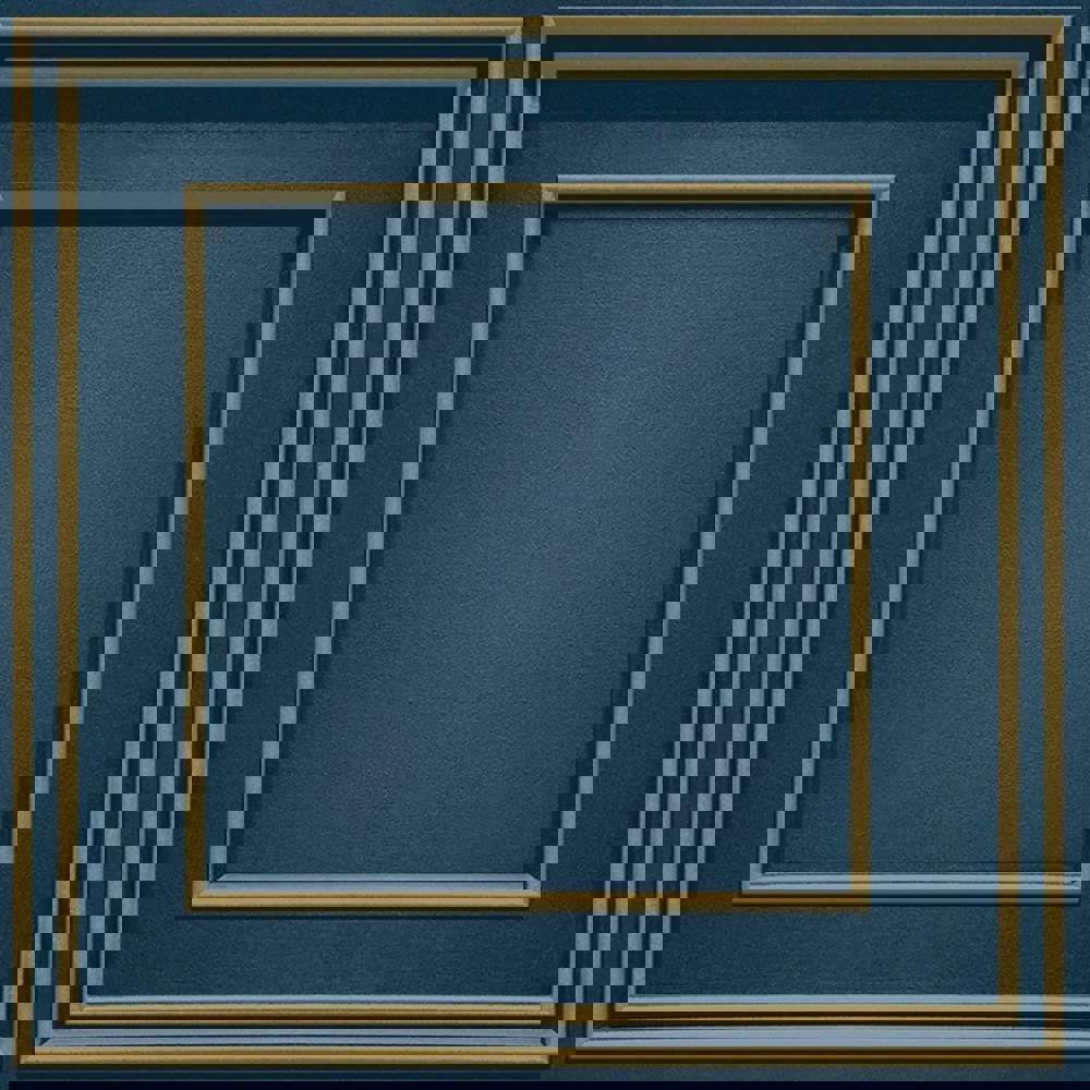 The World Of Wallpaper Forbidden Fruit Panel Wallpaper is designed to bring a distinctive decorative finish to your interior walls. Featuring a 3D effect with metallic accents, it combines a navy blue and gold colour palette with a wood panel-inspired look, creating a bold panel-style statement.