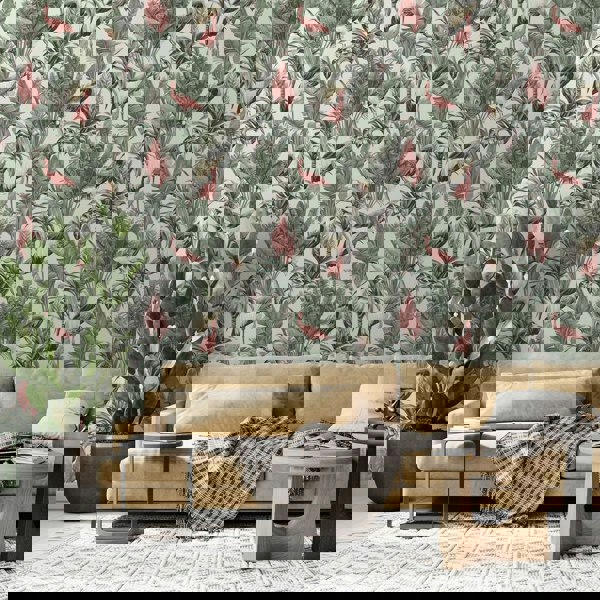 Bring a fresh, nature-inspired look to your space with the World Of Wallpaper Manu Tropical Wallpaper in cream and green. Featuring a detailed mix of birds, foliage and palm leaves, this tropical design adds visual interest to a range of interiors, from living rooms and bedrooms to hallways and home offices.