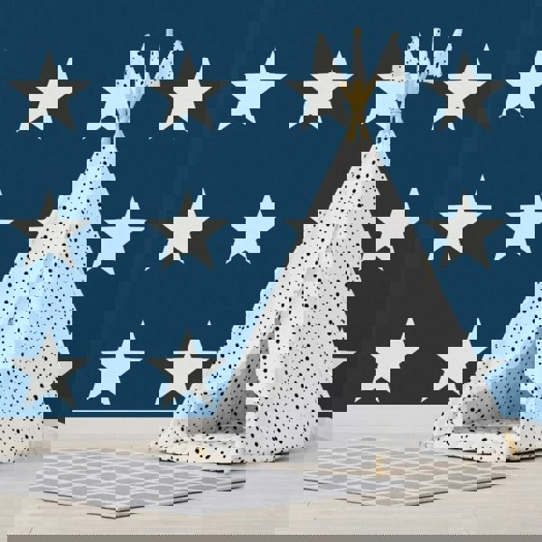 World of Wallpaper Star Wallpaper features a star design in navy and white, finished with a textured surface for added visual interest. Designed to bring a bold, graphic look to your space, it works well as a feature wall or across an entire room, depending on the style you want to create.