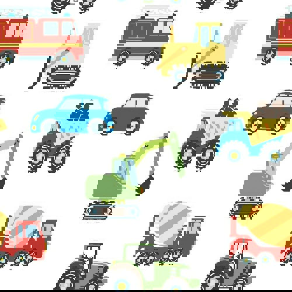 Bring a playful transport theme to your space with the World of Wallpaper Trucks & Transport Wallpaper. Featuring a multicoloured design with cars, diggers and trucks, it’s a simple way to add character to a room while keeping the overall look clean and contemporary.