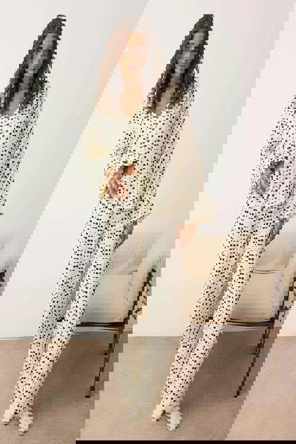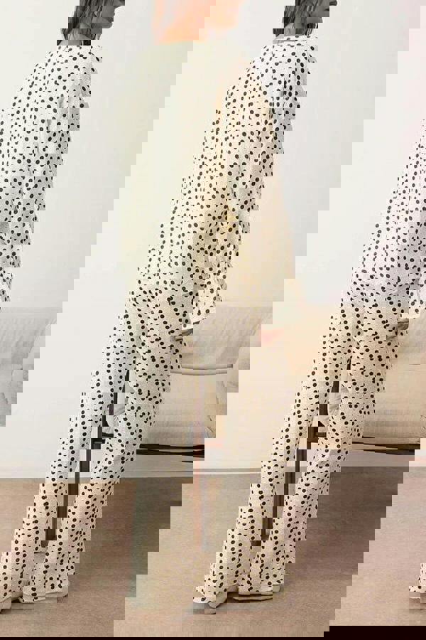 A simple, timeless option for those who prefer natural fibres, this set is easy to rotate into a regular sleepwear collection. The cotton composition keeps the focus on comfort, while the polka dot pattern adds a subtle point of interest without overpowering the design.