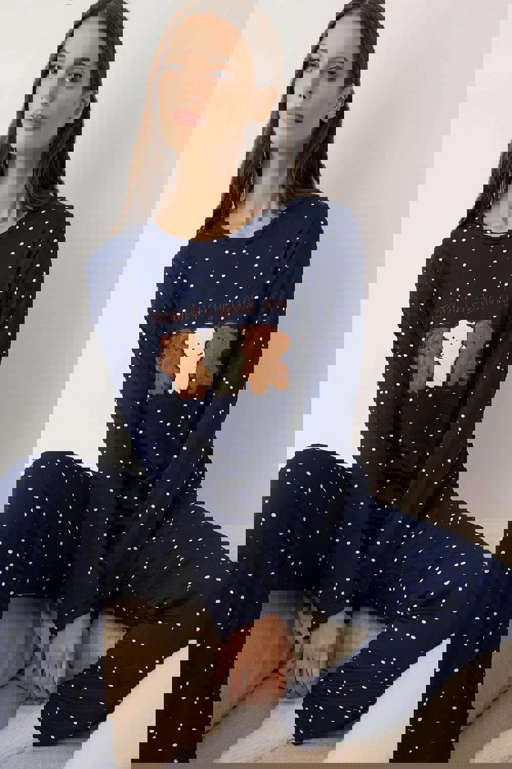 Winter nights call for sleepwear that feels considered, and the WOVCOR 2-piece pyjama set brings a soft-touch finish to a playful blue polka dot look. Knitted for a cosy feel, it’s finished with teddy bear patch detailing for a charming accent. The set comes as a coordinated two-piece, offering an easy option for relaxed evenings and bedtime.