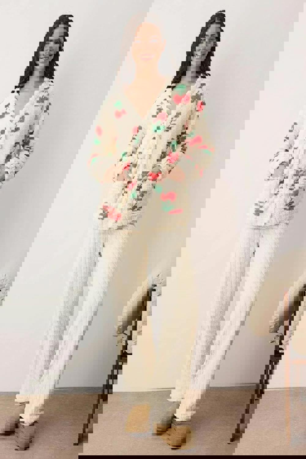 Soft texture and a playful print come together in the WOVCOR 2-piece cherry pattern Wellsoft knitted pajama set. Made from Wellsoft knit, this coordinated set brings an easy feel to downtime, whether you are settling in for the night or keeping things relaxed at home. The cherry pattern adds a distinctive finish, while the knitted construction keeps the look cohesive across both pieces.