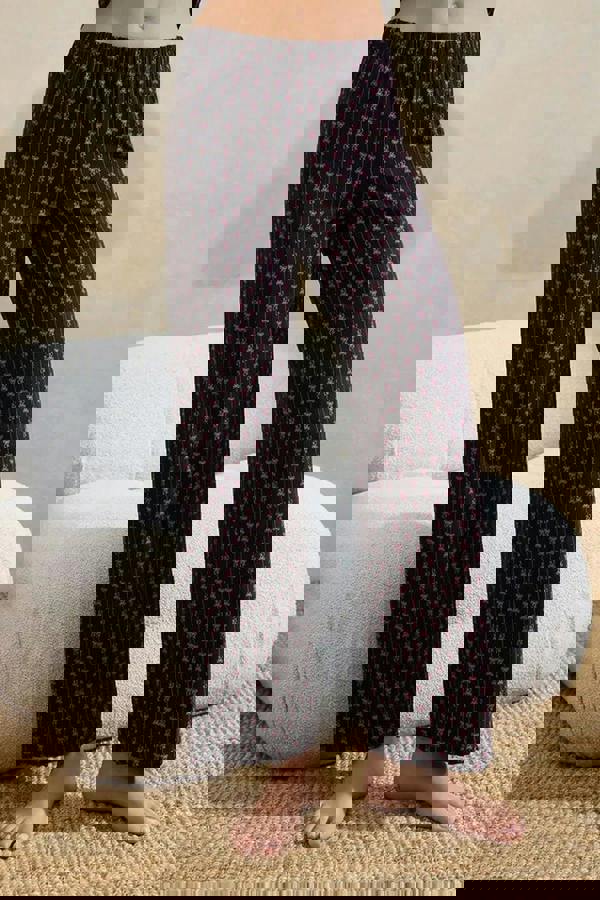 An all-over ribbon pattern brings a refined finish, while the tie-up closure keeps the look neat and adjustable. With three pieces included, it offers a coordinated sleepwear set that suits a considered loungewear wardrobe.