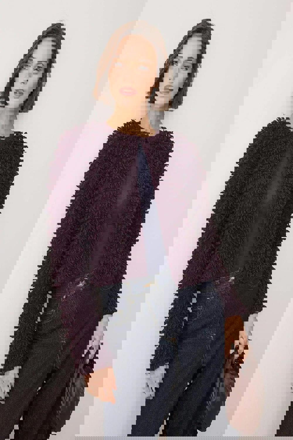 WOVCOR’s Crew Neck Textured Knit Cardigan brings a clean, considered finish to everyday layering. Made from 100% polyester, it has a textured knit construction that adds subtle depth, whether worn over a T-shirt or styled as a standalone piece. A classic crew neckline keeps the look simple and versatile, making it an easy option for transitional dressing and year-round wear.