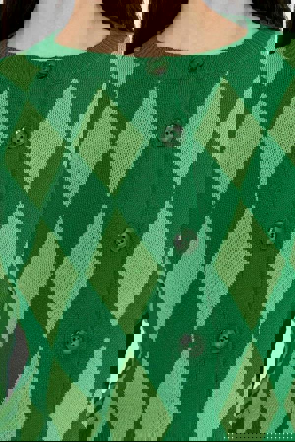 Buttoned through the front, it can be worn fastened for a neat profile or left open for relaxed styling. An easy option for everyday outfits when you want pattern without added bulk.