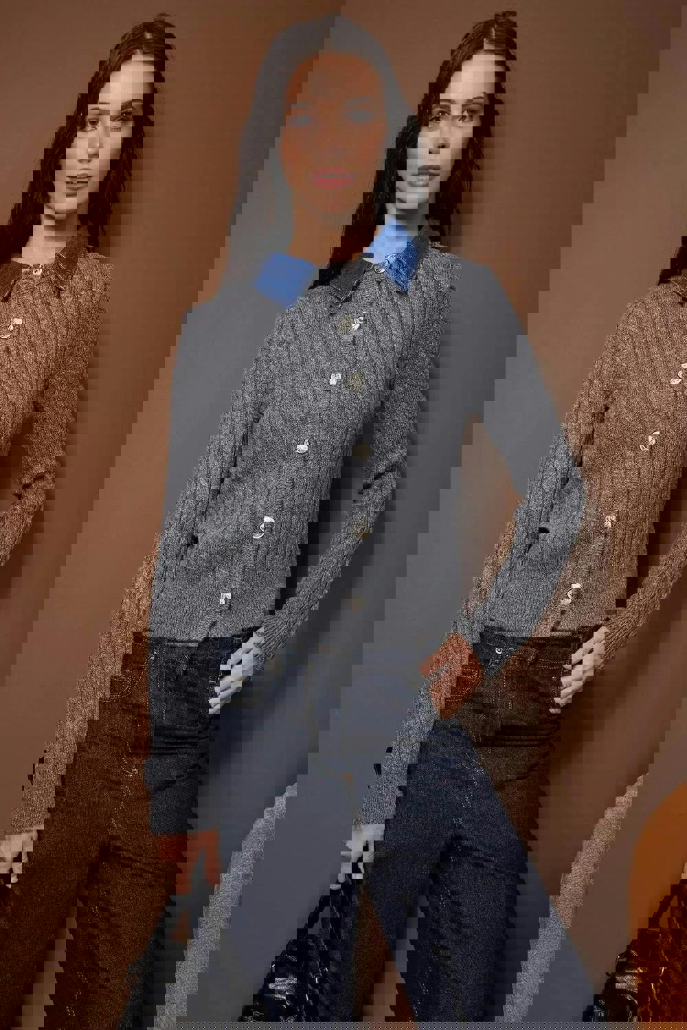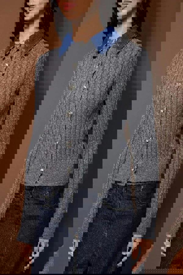 The composition balances viscose with polyester and polyamide, creating a piece that suits regular rotation across the season. Wear it open or styled as part of a smarter casual outfit, with the denim garnish adding a subtle point of contrast.