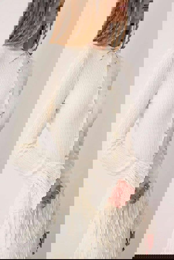 A refined layering piece with a tactile finish, the WOVCOR Mercerized Look Ribbed Polo Collar Knit Cardigan brings a clean, structured note to everyday dressing. The ribbed knit adds subtle definition, while the polo collar keeps the silhouette polished whether worn open or buttoned up.