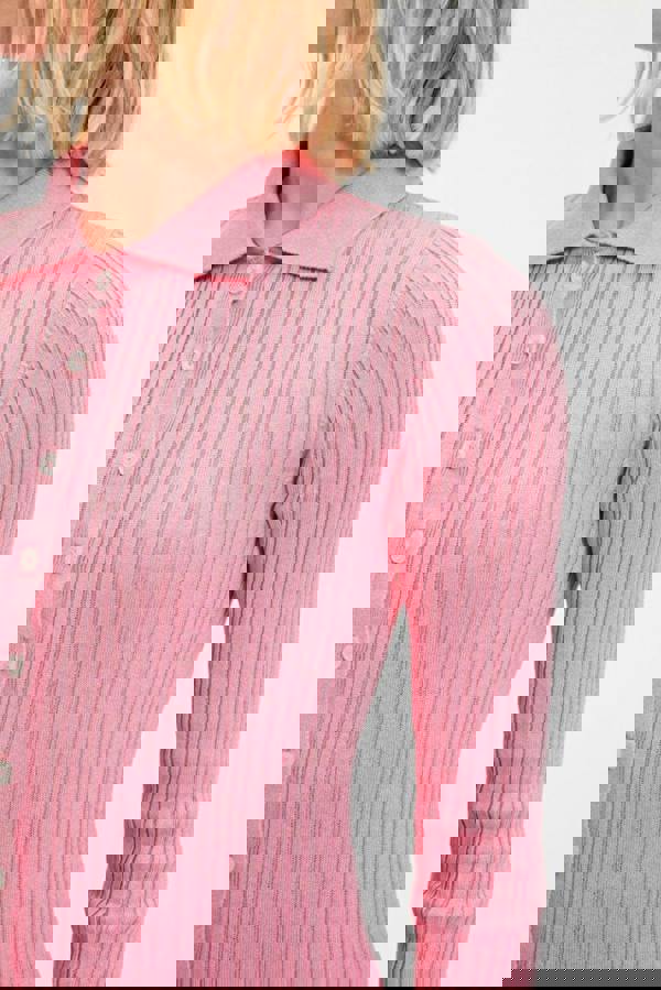 A refined layering piece with a subtle sheen, the WOVCOR Mercerized Look Ribbed Polo Neck Knit Cardigan brings texture and polish to cooler-weather dressing. Ribbed knit construction adds comfortable stretch, while the polo neck lends a classic finish that works neatly under coats or as a standalone top.