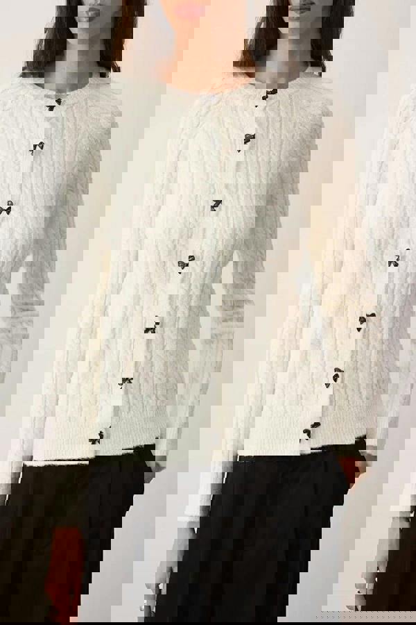 A soft-textured knit cardigan from WOVCOR, the Soft-Textured Knit Cardigan with Ribbon Buttons Detail brings a considered finish to everyday layering. Made from a blend of 75% acrylic and 25% polyester, it offers a gentle handle with a classic cardigan silhouette, finished with ribbon button detailing for a distinctive look.