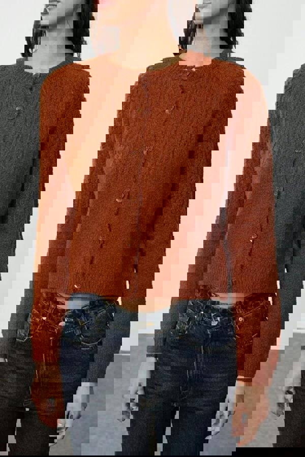 Crafted from a durable blend of 79% acrylic and 21% polyester, this cardigan balances warmth with a lighter handle, making it a practical choice for day-to-day wear.
