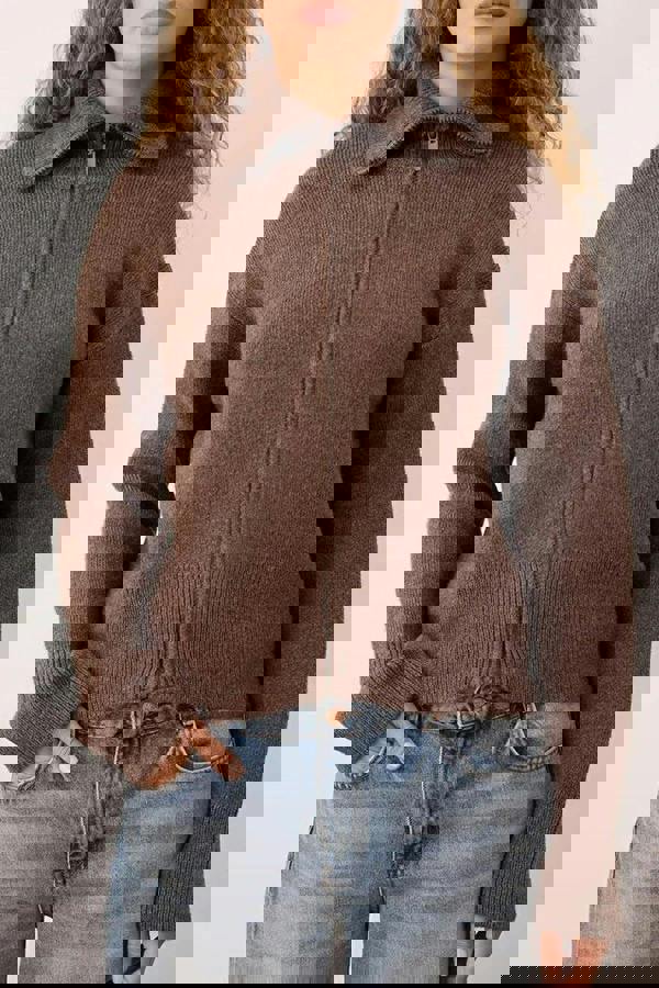 WOVCOR’s Soft Textured Oversize Knit Cardigan with Zipper is crafted from a blend of acrylic, polyester and polyamide, with a textured finish and an oversized silhouette. A full-length zip fastening keeps the look clean and practical, making it easy to layer and adjust throughout the day.