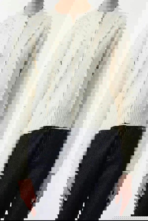 A smooth zip fastening keeps the front neat, while stone embellishments add a considered decorative touch. Easy to wear as a warm extra layer, it suits everyday outfits when the temperature drops.