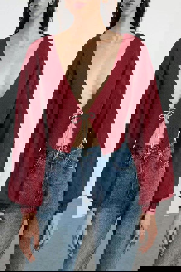 Clean lines and a considered silhouette define the WOVCOR Super Crop Knit Cardigan with Bow Detail. WOVCOR finishes the front neckline with a bow embellishment, bringing a refined point of interest to an otherwise minimalist look.