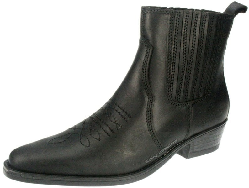 A great example of a classic mens cowboy style boot from wrangler. A high quality leather boot made in Portugal unlike other cheaper wrangler boots made outside of europe available online. These boots have an elasticated gusset making it easy to get them on and off and add style to the boot along with some stitch detailing to the uppers and a raised heel. A great pair of fashionable retro-inspired boots of a fantastic quality.
