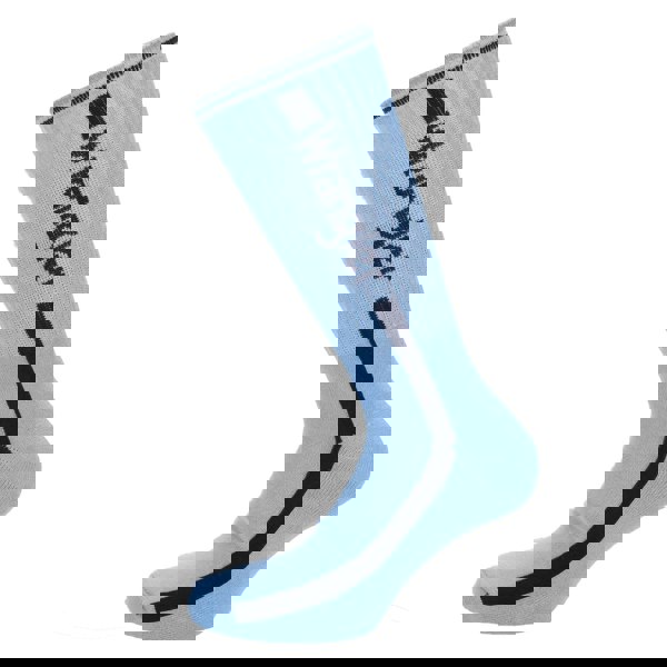 The design combines ribbed and striped detailing with a logo, making them a practical choice for sports wear.
