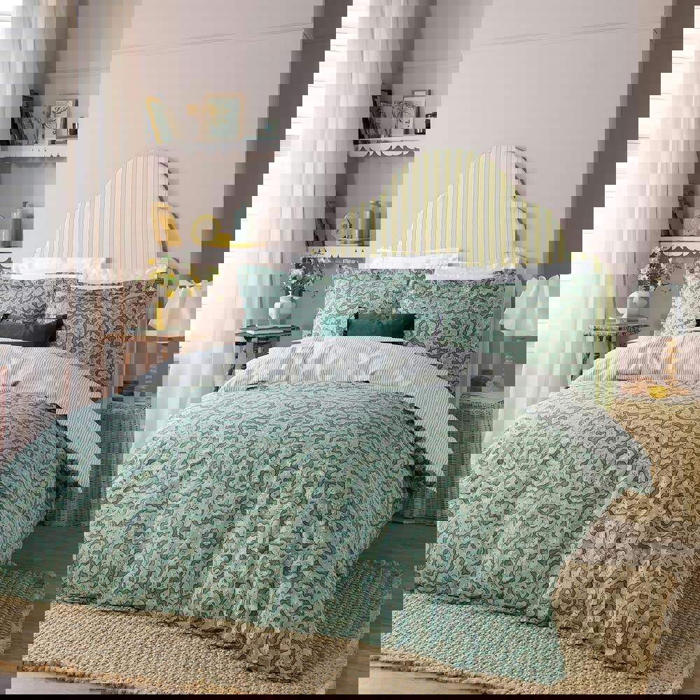The Wylder Brianna Duvet Cover Set is designed to refresh your bedding with a printed floral look in a tarragon colourway. Made from 100% cotton with a soft-touch finish, it offers a comfortable feel for everyday use and an easy way to update your bedroom style.