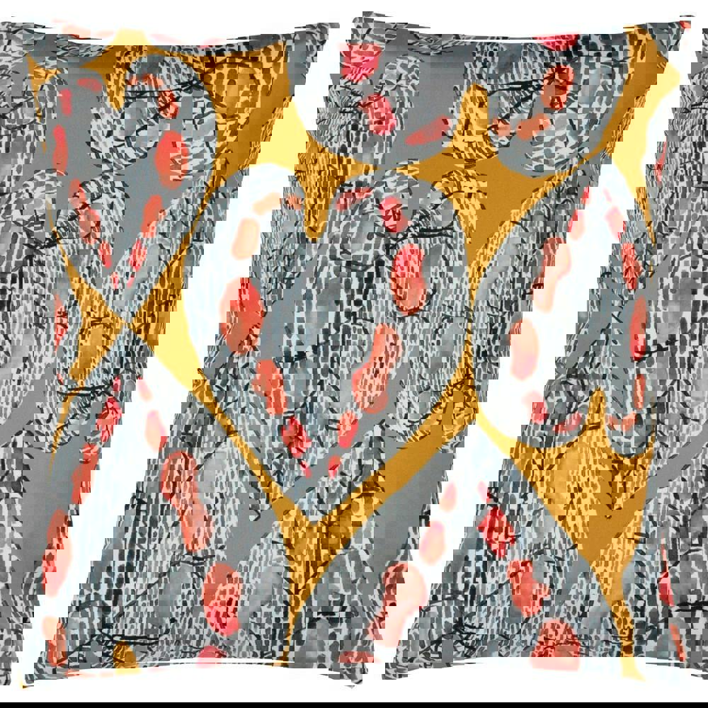 The Wylder Ebon Wilds Mahari Outdoor Cushion Cover in Saffron is designed to refresh your outdoor seating with a bold printed finish. Featuring a monochrome pattern with heart and leaf motifs, it adds contrast detail that stands out across patios, balconies and garden furniture.