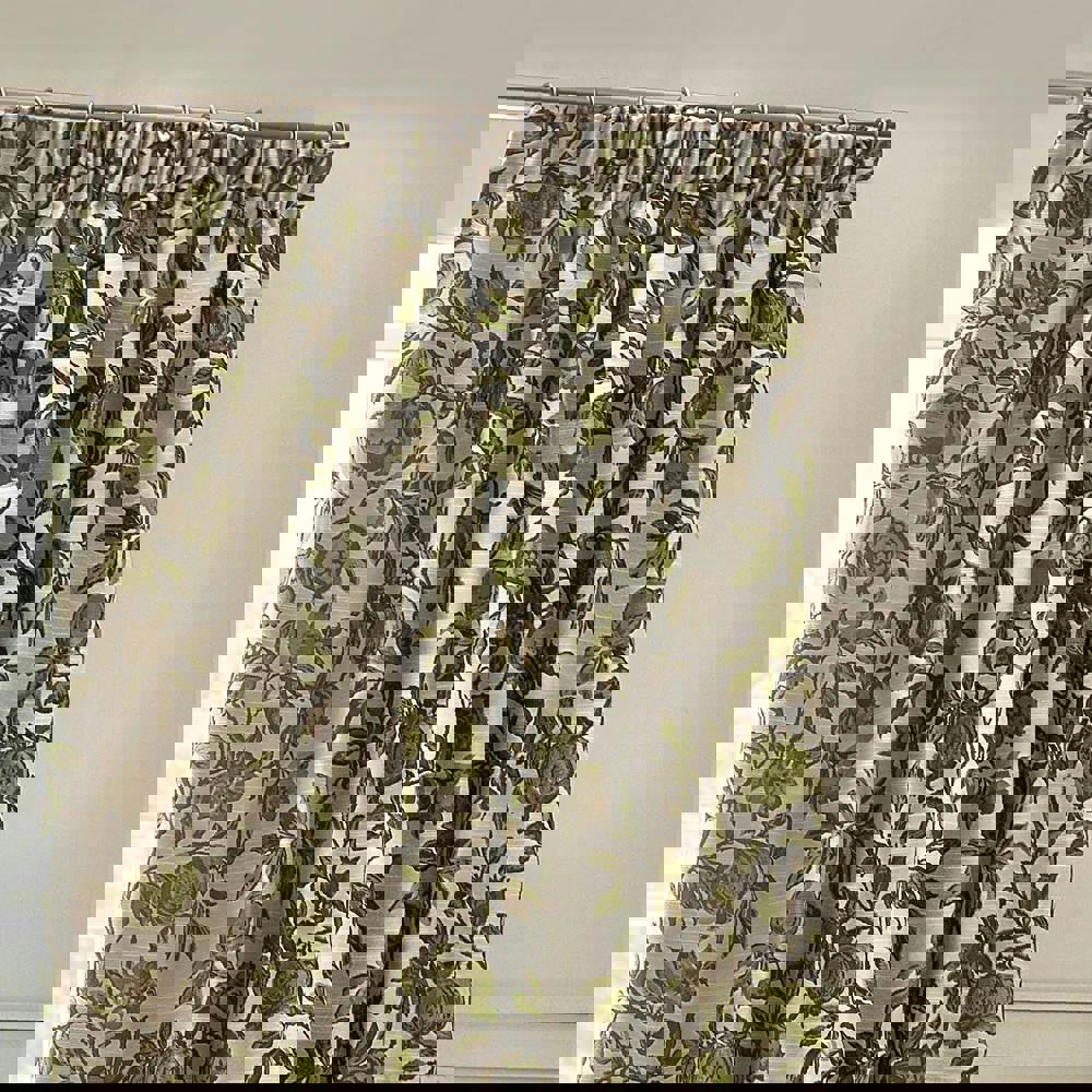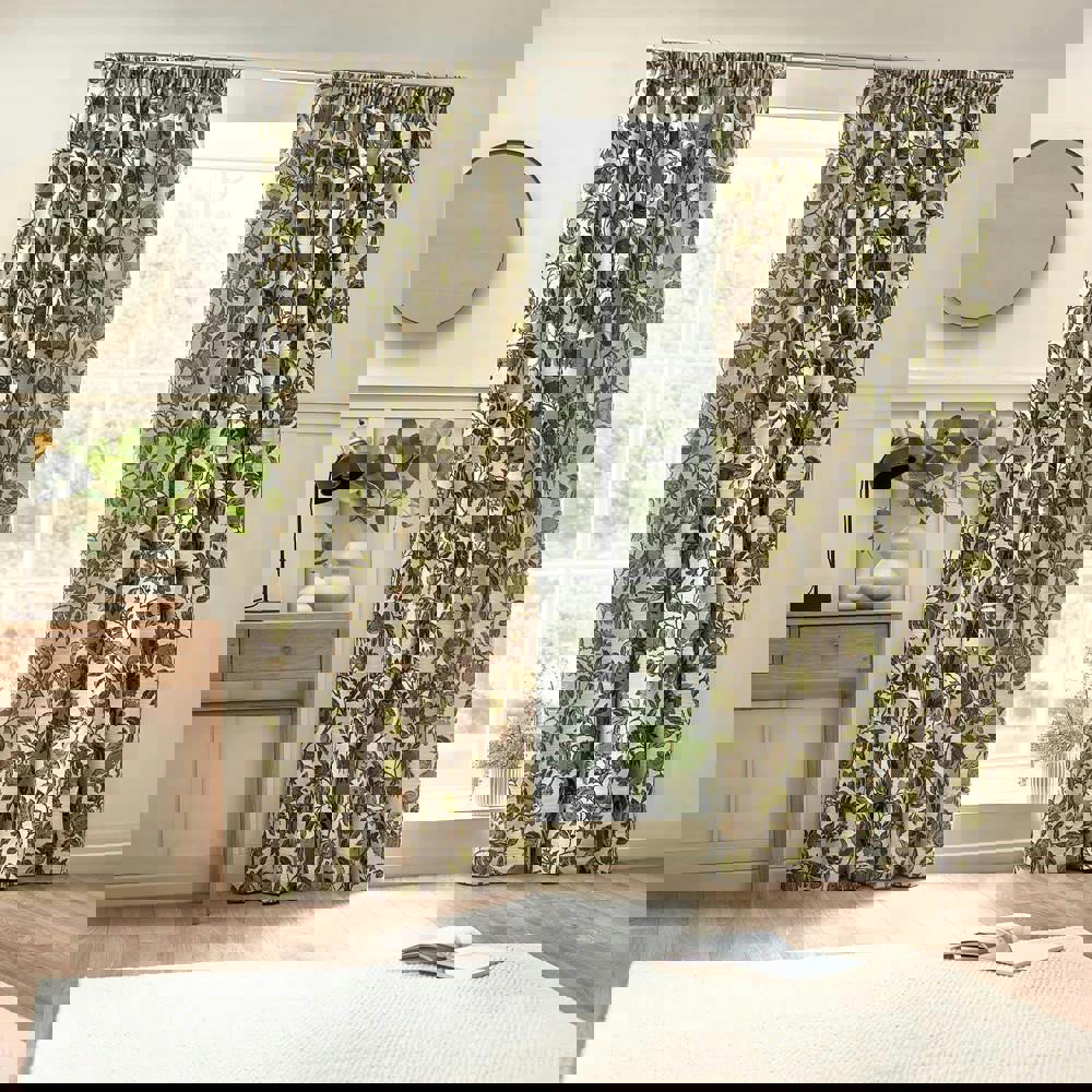 Bring a decorative finish to your windows with the Wylder Jacquard Pomegranate Floral Pencil Pleat Curtains in green. Designed for bay windows, these curtains feature an all-over floral and pomegranate print that adds pattern and colour to your space while keeping the look coordinated.