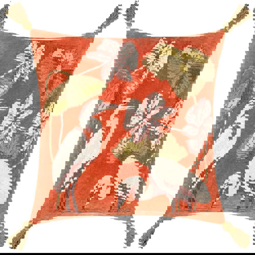 Featuring an embroidered crane and floral design on the front, this square cushion cover brings detail and colour to your interior. The reverse is plain for a cleaner look when you want a more understated arrangement, while tassel trim adds a subtle finishing touch. A hidden zip closure helps keep the cover looking neat and streamlined.