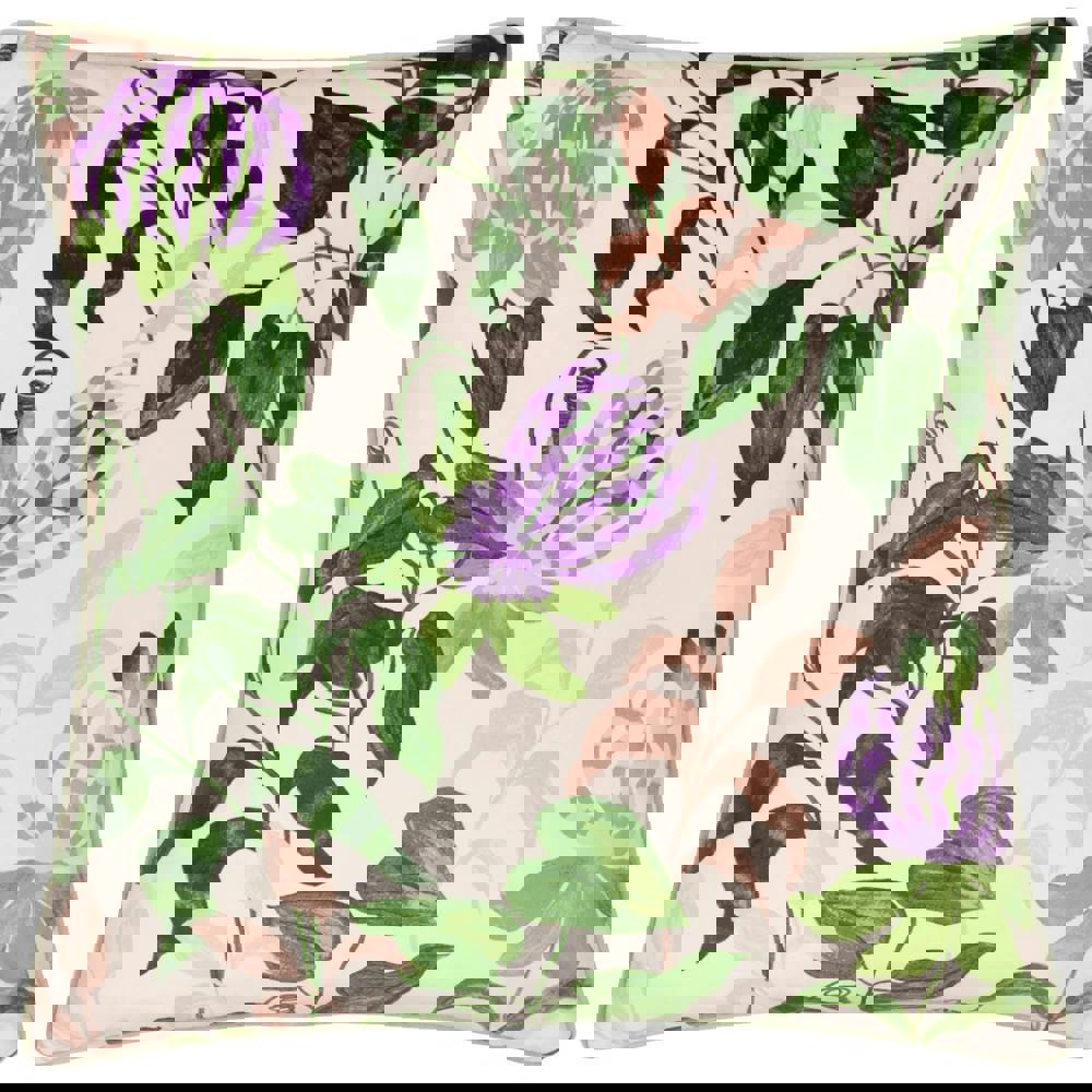 The Wylder Piped Velvet Passion Flower Cushion Cover is a square cushion cover designed to refresh your space with a printed passion flower design. Finished in peach and vine green, it brings colour and pattern to sofas, armchairs or beds, while the plain reverse offers a simpler look when you want to change the feel of your room.