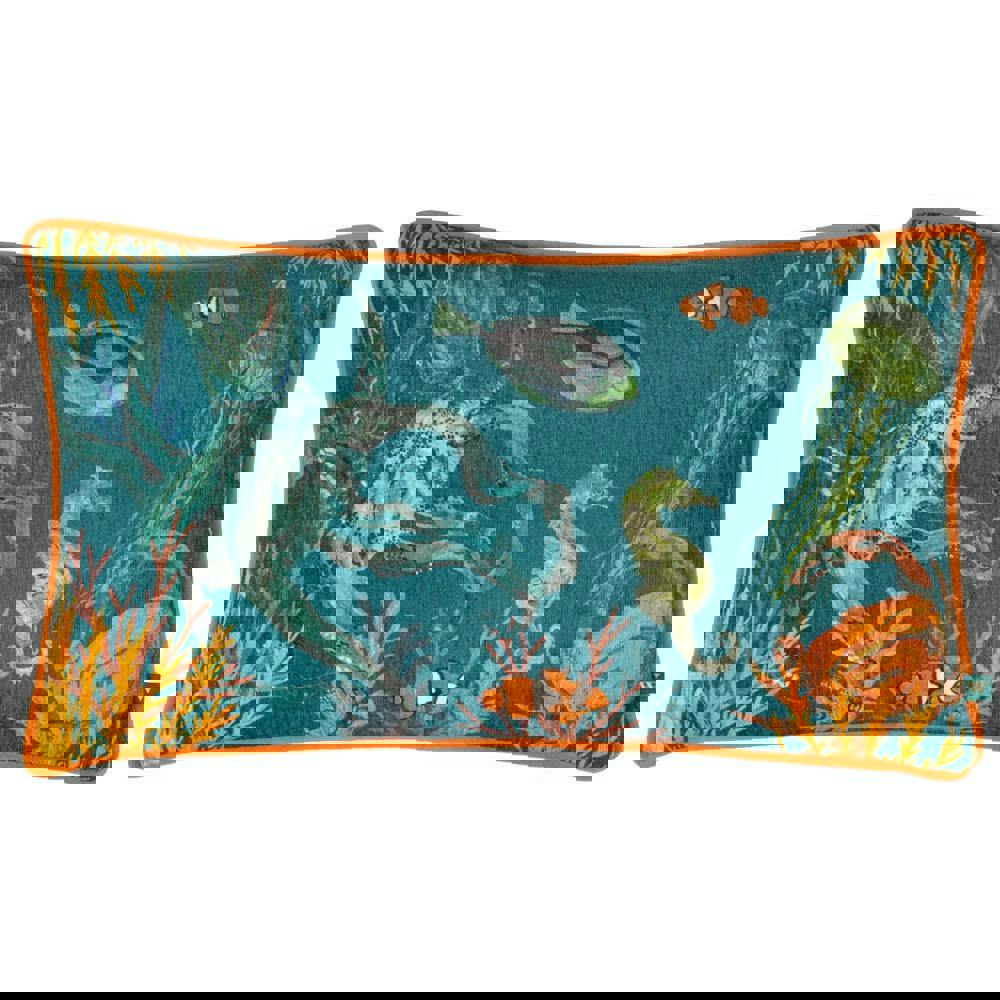 This rectangular cushion cover features an aquatic scene with marine animals and contrast detailing, finished with piped trim for a neat outline. A plain reverse keeps the look versatile, while the zip fastening makes it simple to remove and fit as needed.