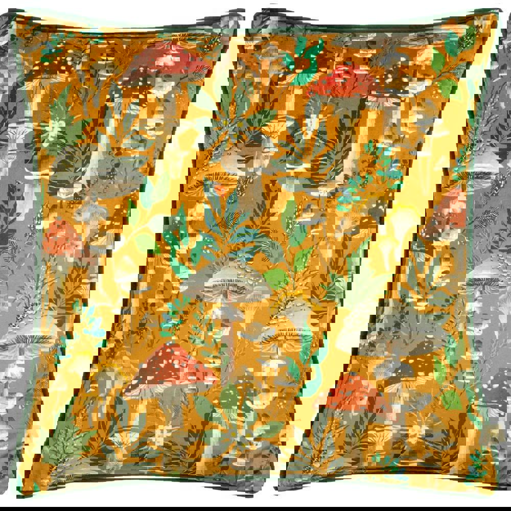 The Wylder Wild Garden Piped Velvet Mushroom Cushion Cover is designed to refresh your space with a soft-touch velvet finish and a distinctive printed look. Featuring a repeat print with leaves and mushroom motifs, it brings pattern and colour to sofas, armchairs or beds while keeping styling simple and versatile.