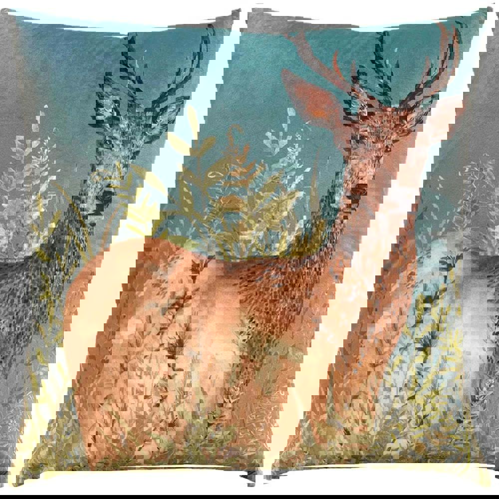 The Wylder Willow Stag Cushion Cover in cyan is designed to refresh your living space with a decorative, hand-designed printed finish. Featuring a floral and stag design with contrast detailing, it offers an easy way to update a sofa, armchair or bed with a statement accent.