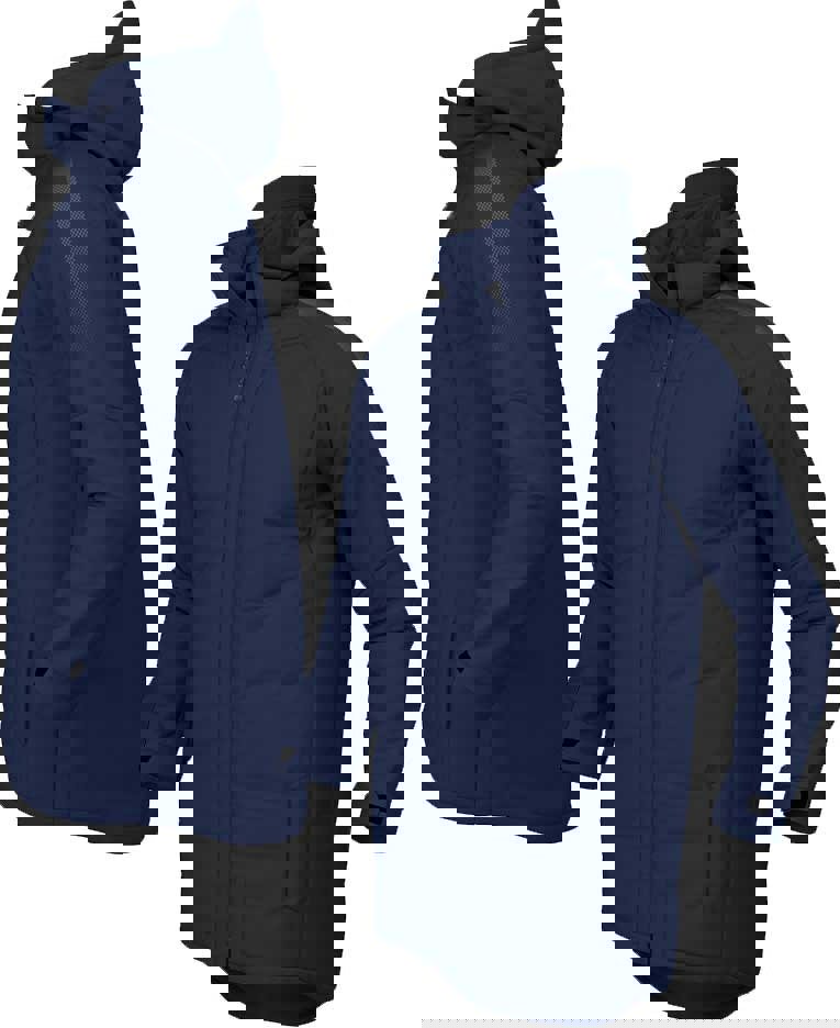 Full two-way zipped closure and storm weather-backed zipper. Square cut cuffs with adjustable Velcro fastenings and up-stand collar and integrated thermally insulated storm peaked hood when fully zipped closed. Two functional zipped side pockets and internal zip access pocket for embellishment. Rear dropped hem for great upper leg coverage. Level 1 Water Proofing.
