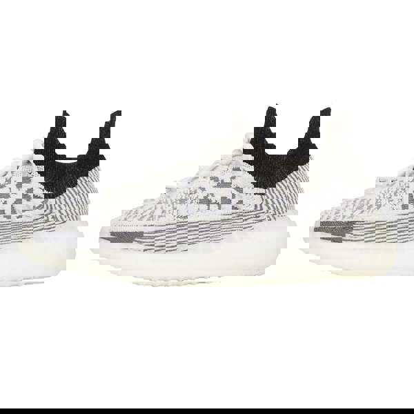 Yeezy Boost 350 V2 Compact trainers in white with a two tone design. The upper and lining are made from fabric, paired with a rubber outsole for a practical finish. A low cut shape and round toe keep the profile clean, while the flat sole maintains a streamlined look for everyday wear.