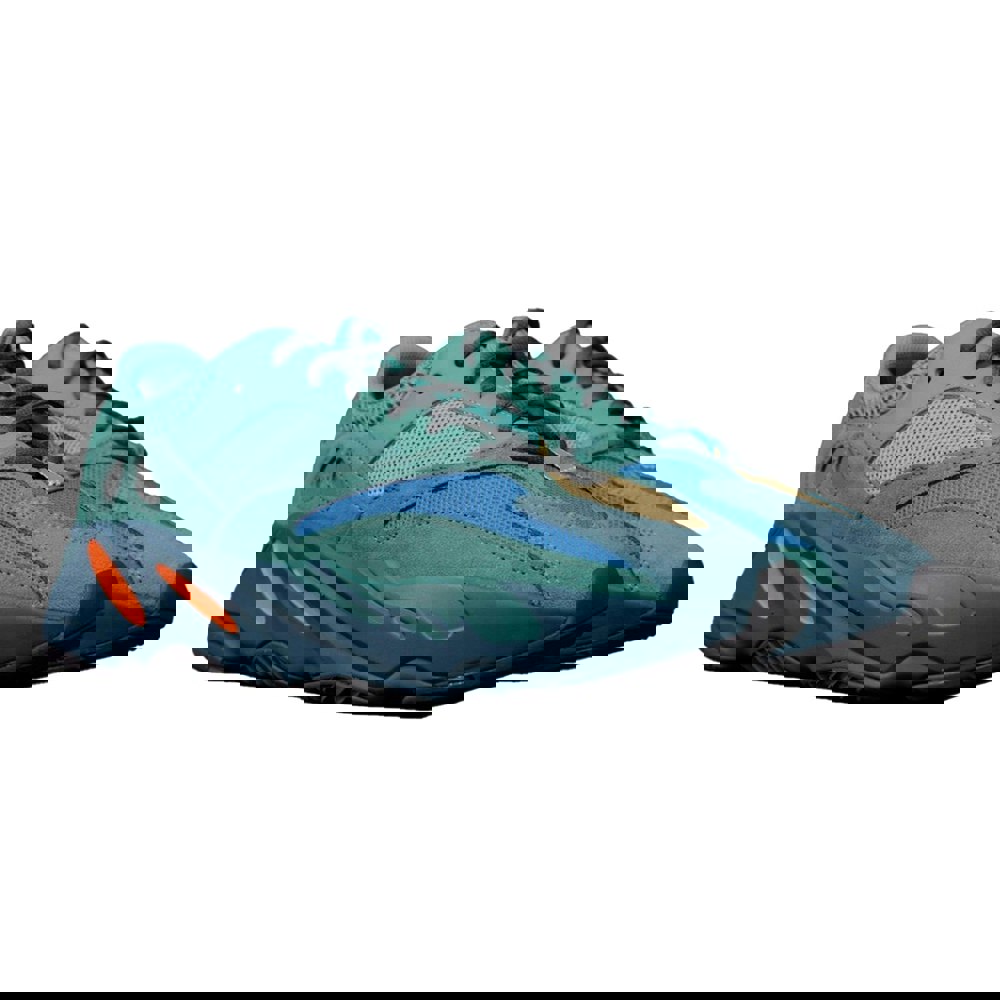 These Yeezy Boost 700 trainers are made with a leather upper and a low-cut profile. The design includes contrast detailing and perforated sections, finished with a round toe for a clean, classic shape. A lace-up fastening runs through seven eyelets, keeping the look streamlined and secure.