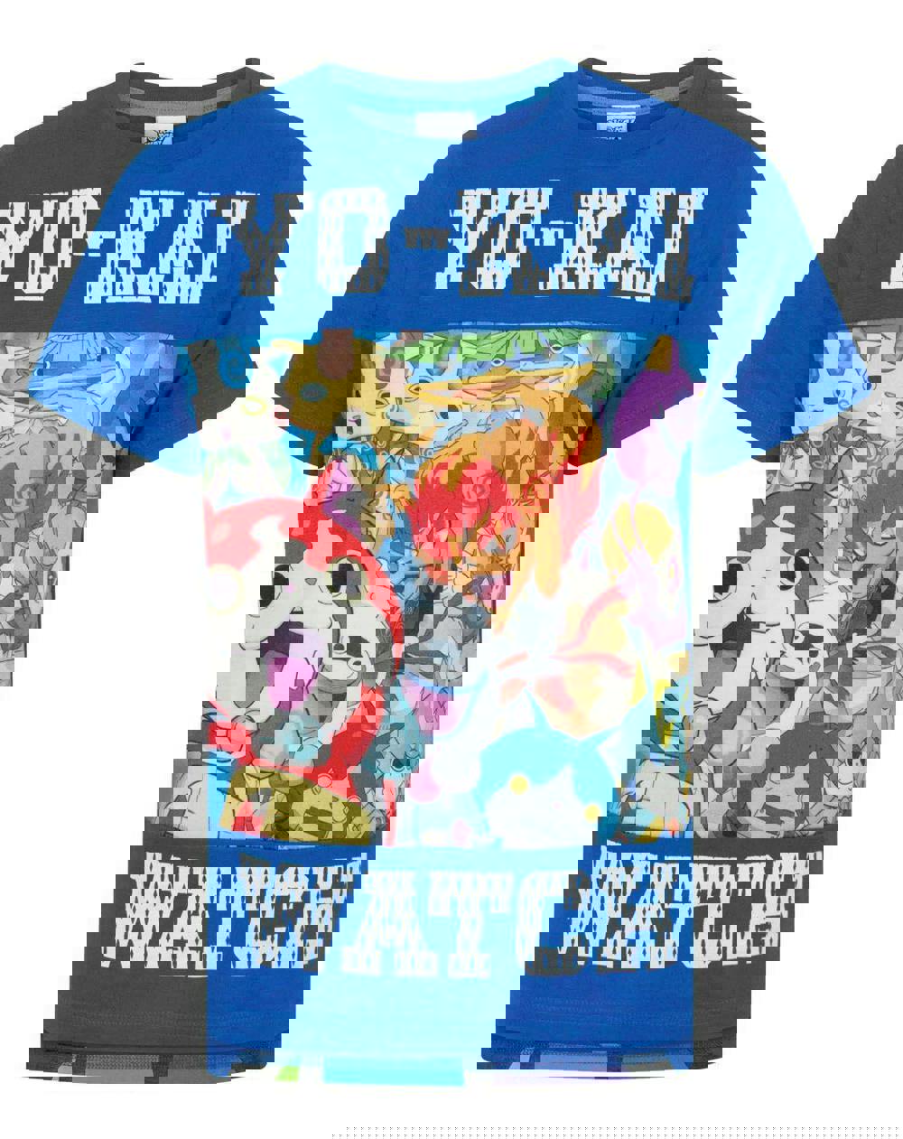 A perfect t-shirt for Yo-Kai Watch fans, this super awesome Yo-Kai Watch characters t-shirt has a vibrant design making it a fun addition to any little one's wardrobe! Offering something unique, this t-shirt boasts a vibrant sublimated panel on the front featuring a detailed illustration of Jibanyan backed by the iconic Yo-Kai: Whisper, Blazion, Walkappa, and Komasan