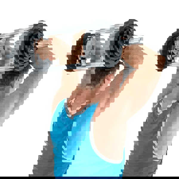 It is great for working the triceps and developing the biceps, back, and shoulders. It can be used to perform various exercises including hammer curls, overhead tricep presses, skull crushers, bench presses and more. Weight plates and collars are not included.