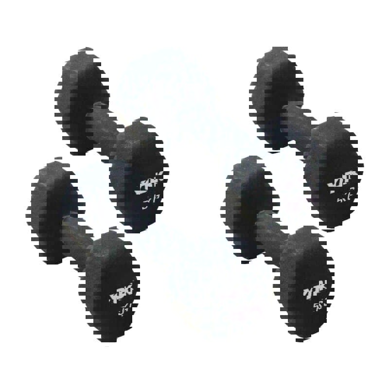The 5kg York Neo Hex dumbbells are crafted from durable cast iron, featuring a substantial neoprene coating that's both enduring and simple to maintain.