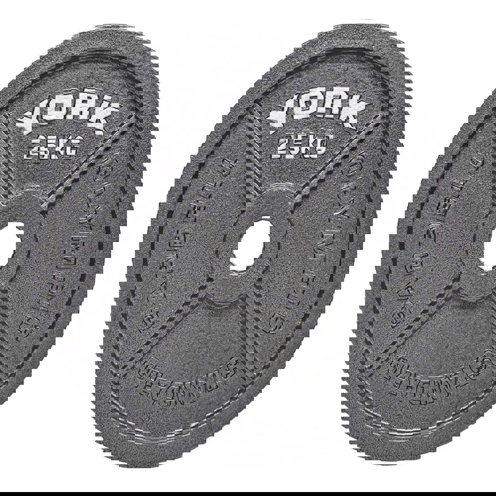 Rev up your workout with the York 25kg Olympic Hammertone Cast Iron Weight Plate. Designed for all 2" Olympic bars, this plate is ideal for elevating your fitness routine. Experience the trust and excellence of YORK's prestigious brand that is synonymous with superior quality for more than 80 years.