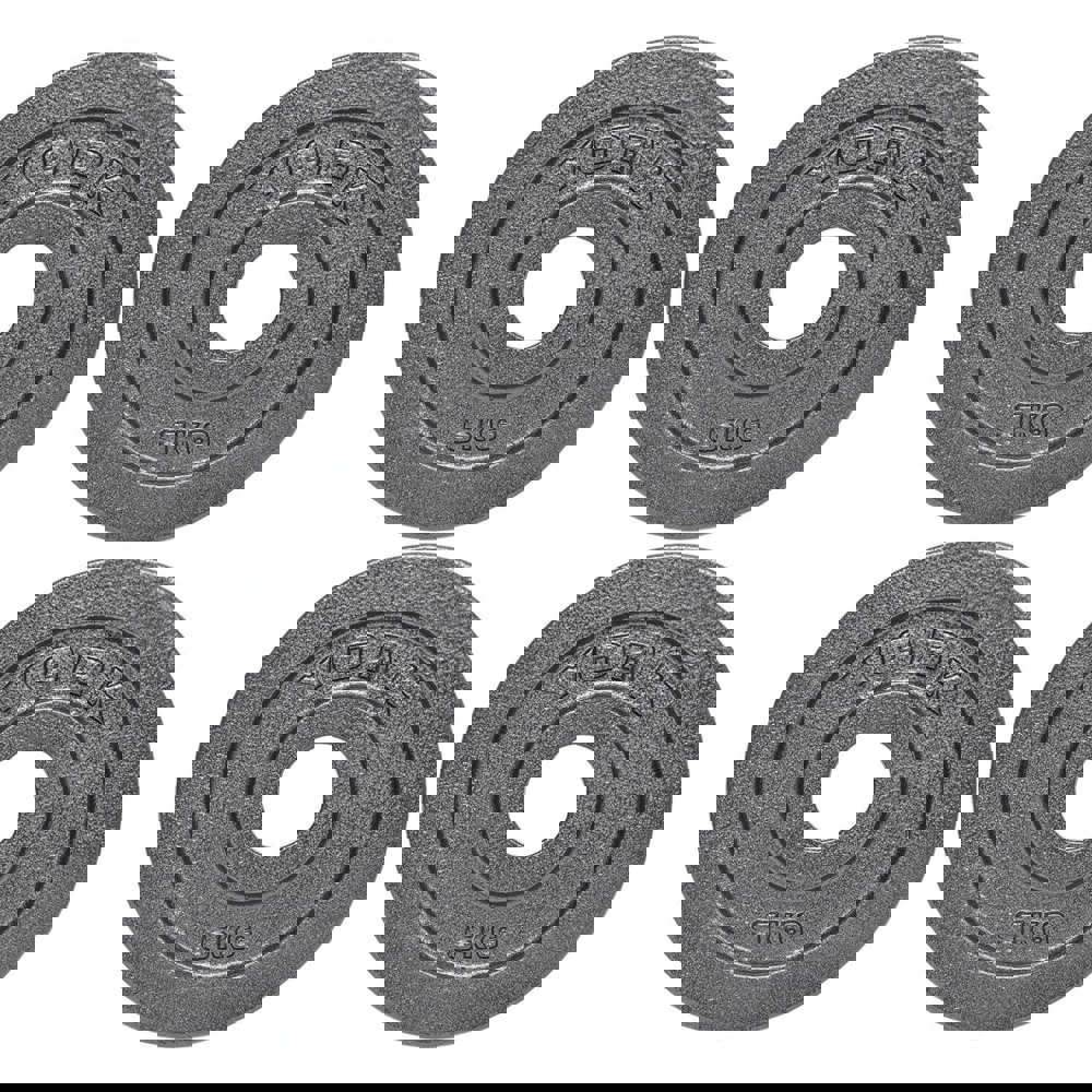 Upgrading from standard 1" weights, these durable, cast iron Olympic plates are perfect if you want to take your weight training to the next level. The plates are finished in durable grey hammertone. Bar not included.