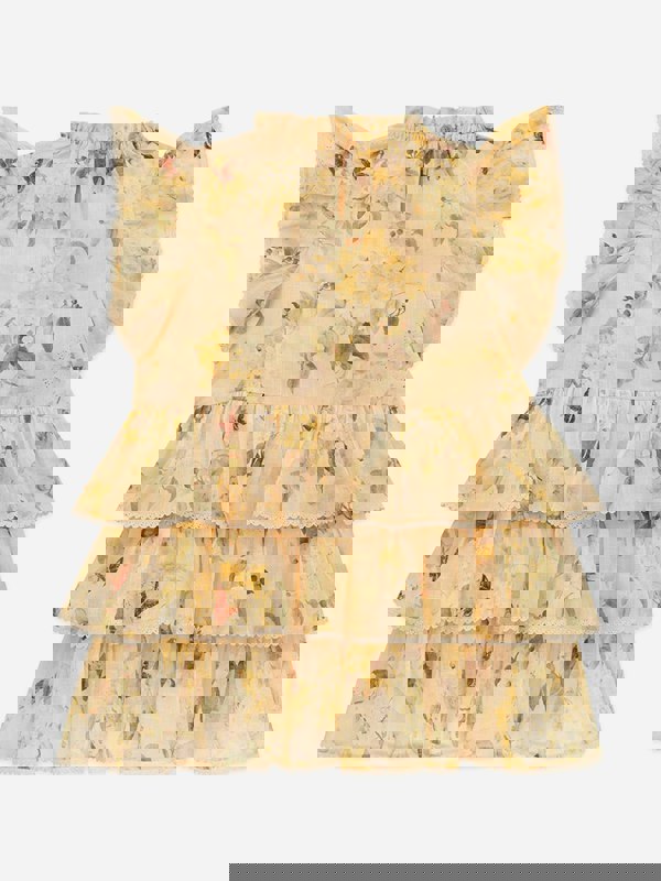 The Zimmermann Girls Cascadian Swing Dress in yellow brings a bright, cheerful look to an AW2025 wardrobe. A swing silhouette creates a flowing shape with easy movement, keeping the overall finish light and playful. The vibrant yellow hue stands out clearly, making it a distinctive option for the season.