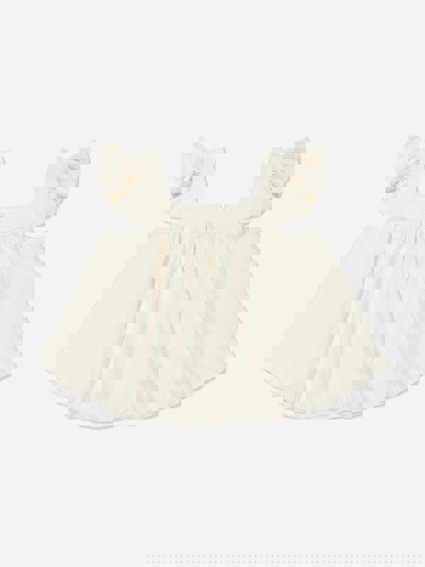 This top offers an understated option for a child’s wardrobe, combining a pared-back silhouette with the distinctive feel of denim in a light ivory shade.