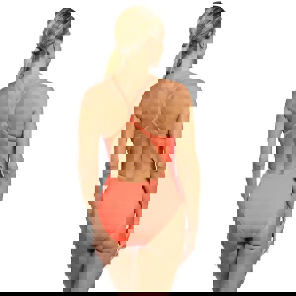 Zoggs' Coral Sprintback Swimsuit combines vibrant coral colouring with practical performance features designed for regular swimmers. The distinctive Sprintback straps provide enhanced shoulder mobility, whilst the high-leg front cut delivers a sporty silhouette. Constructed from Ecolast—an innovative fabric engineered from recycled post-consumer plastic bottles—this swimsuit delivers environmental responsibility without compromise. The chlorine-resistant properties ensure durability through frequent pool use, making it an excellent choice for dedicated swimmers seeking both style and sustainability.