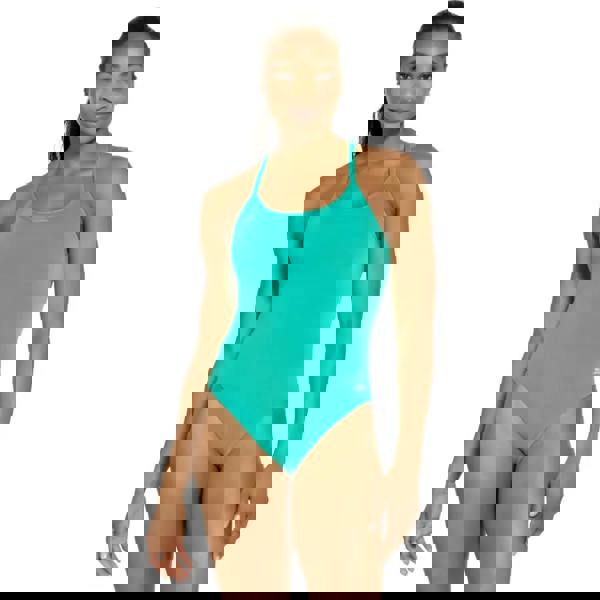 Designed for competitive swimmers and fitness enthusiasts, the Mint Sprintback Women's Swimsuit from Zoggs combines performance with environmental responsibility. Its distinctive narrow back straps provide unrestricted shoulder mobility, while the high-cut front leg delivers a sleek, athletic silhouette. Crafted from Ecolast—an innovative fabric engineered from recycled plastic bottles—this swimsuit reduces environmental impact without compromising durability. The chlorine-resistant construction ensures longevity through frequent pool use, making it an intelligent investment for serious swimmers seeking both functionality and sustainability.