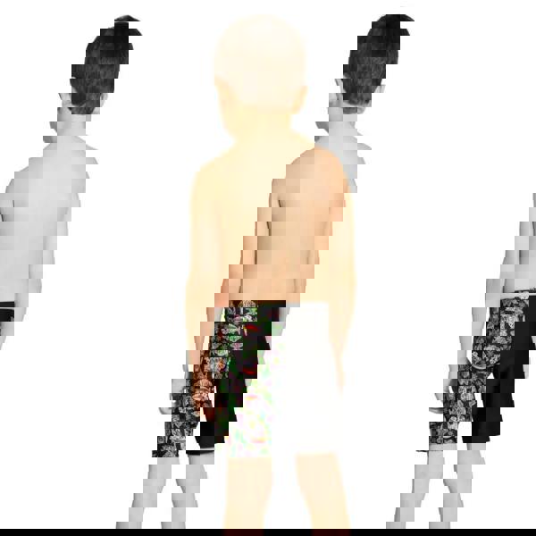 Zoggs Tots Boys Finzilla Mid Swim Jammer in black and green floral turtle print